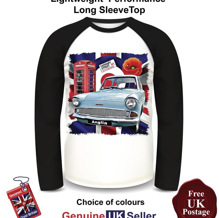 Ford Anglia, Ford Anglia Mens Top, Ford Anglia Long Sleeve T Shirt, Mens T Shirts,Men's Baseball Top Long Sleeves Choose Your Colour & Size, This is a fan Inspired unofficial product the art work designed by us Aggies Bags the 160 gsm Featuring a lean design this 65% Polyester 35% Cotton lightweight performance T Shirt printed by us with a cotton-feel Polyester 180gsm (front and back) with 65% Polyester 35% cotton 160gsm (arms and neck) means it is a good quality garment for any occasion T Shirt ideal for the summer or holiday t shirt with an even and smooth surface Comfortable body length construction for a perfect look Side seams ensure the best fit For long-lasting comfort the neck seams are reinforced with soft binding Thin collar in self-fabric for modern up to date appearance Minimalist cut and detailing suitable for many uses and any end user requirements.