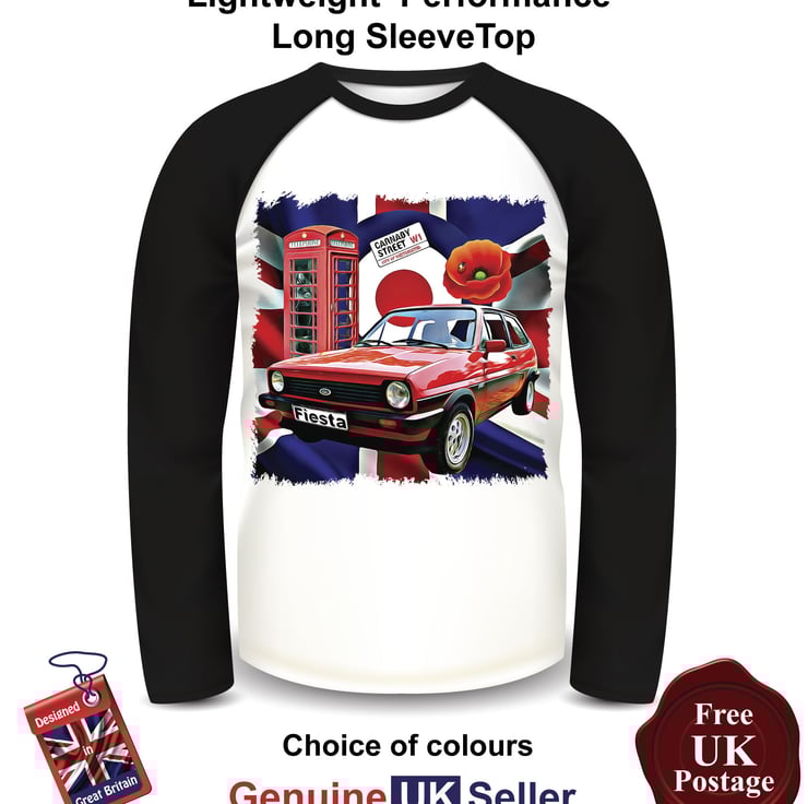 Fiesta XR2, Red Fiesta Mens Top, Fiesta XR2 Long Sleeve Mens T Shirt , Men's Baseball Top Long Sleeves Choose Your Colour & Size, This is a fan Inspired unofficial product the art work designed by us Aggies Bags the 160 gsm Featuring a lean design this 65% Polyester 35% Cotton lightweight performance T Shirt printed by us with a cotton-feel Polyester 180gsm (front and back) with 65% Polyester 35% cotton 160gsm (arms and neck) means it is a good quality garment for any occasion T Shirt ideal for the summer or holiday t shirt with an even and smooth surface Comfortable body length construction for a perfect look Side seams ensure the best fit For long-lasting comfort the neck seams are reinforced with soft binding Thin collar in self-fabric for modern up to date appearance Minimalist cut and detailing suitable for many uses and any end user requirements.
