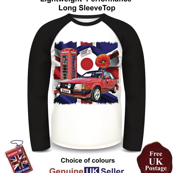 Ford Escort MK3, Ford Escort Mens Top, Escort MK3 Mens long Sleeve T Shirt, Men's Baseball Top Long Sleeves Choose Your Colour & Size, This is a fan Inspired unofficial product the art work designed by us Aggies Bags the 160 gsm Featuring a lean design this 65% Polyester 35% Cotton lightweight performance T Shirt printed by us with a cotton-feel Polyester 180gsm (front and back) with 65% Polyester 35% cotton 160gsm (arms and neck) means it is a good quality garment for any occasion T Shirt ideal for the summer or holiday t shirt with an even and smooth surface Comfortable body length construction for a perfect look Side seams ensure the best fit For long-lasting comfort the neck seams are reinforced with soft binding Thin collar in self-fabric for modern up to date appearance Minimalist cut and detailing suitable for many uses and any end user requirements.
