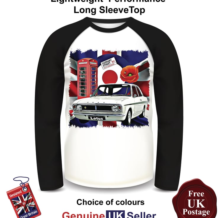 Ford Cortina MK2, Cortina MK2 Mens Top, Ford Cortina Long Sleeve T Shirt, Men's Baseball Top Long Sleeves Choose Your Colour & Size, This is a fan Inspired unofficial product the art work designed by us Aggies Bags the 160 gsm Featuring a lean design this 65% Polyester 35% Cotton lightweight performance T Shirt printed by us with a cotton-feel Polyester 180gsm (front and back) with 65% Polyester 35% cotton 160gsm (arms and neck) means it is a good quality garment for any occasion T Shirt ideal for the summer or holiday t shirt with an even and smooth surface Comfortable body length construction for a perfect look Side seams ensure the best fit For long-lasting comfort the neck seams are reinforced with soft binding Thin collar in self-fabric for modern up to date appearance Minimalist cut and detailing suitable for many uses and any end user requirements.