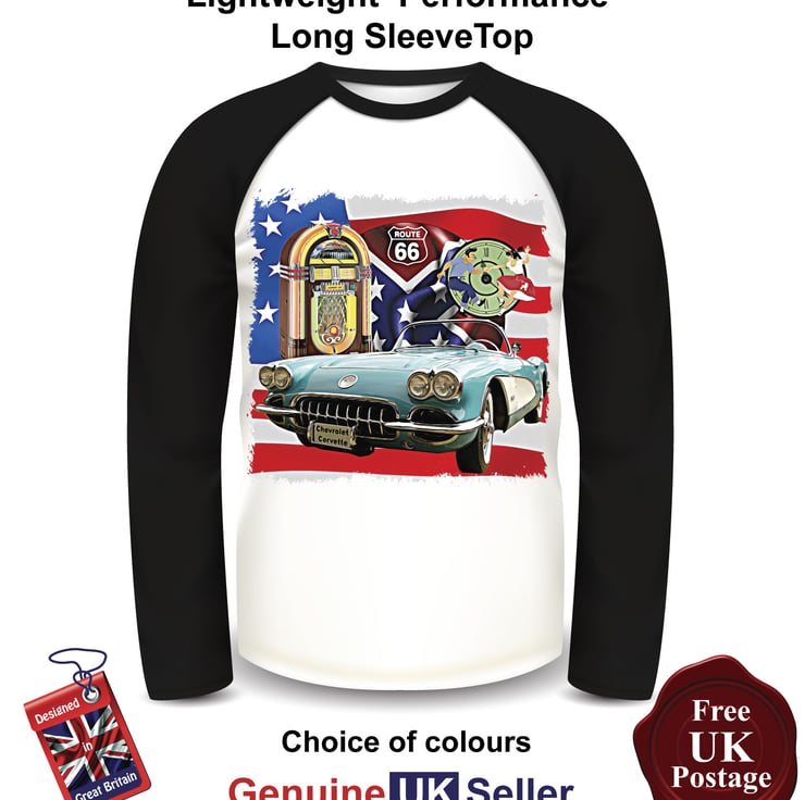 Chevrolet Corvette, Chevrolet Mens Top, Corvette Mens Long Sleeve T Shirt, Men's Baseball Top Long Sleeves Choose Your Colour & Size, This is a fan Inspired unofficial product the art work designed by us Aggies Bags the 160 gsm Featuring a lean design this 65% Polyester 35% Cotton lightweight performance T Shirt printed by us with a cotton-feel Polyester 180gsm (front and back) with 65% Polyester 35% cotton 160gsm (arms and neck) means it is a good quality garment for any occasion T Shirt ideal for the summer or holiday t shirt with an even and smooth surface Comfortable body length construction for a perfect look Side seams ensure the best fit For long-lasting comfort the neck seams are reinforced with soft binding Thin collar in self-fabric for modern up to date appearance Minimalist cut and detailing suitable for many uses and any end user requirements.