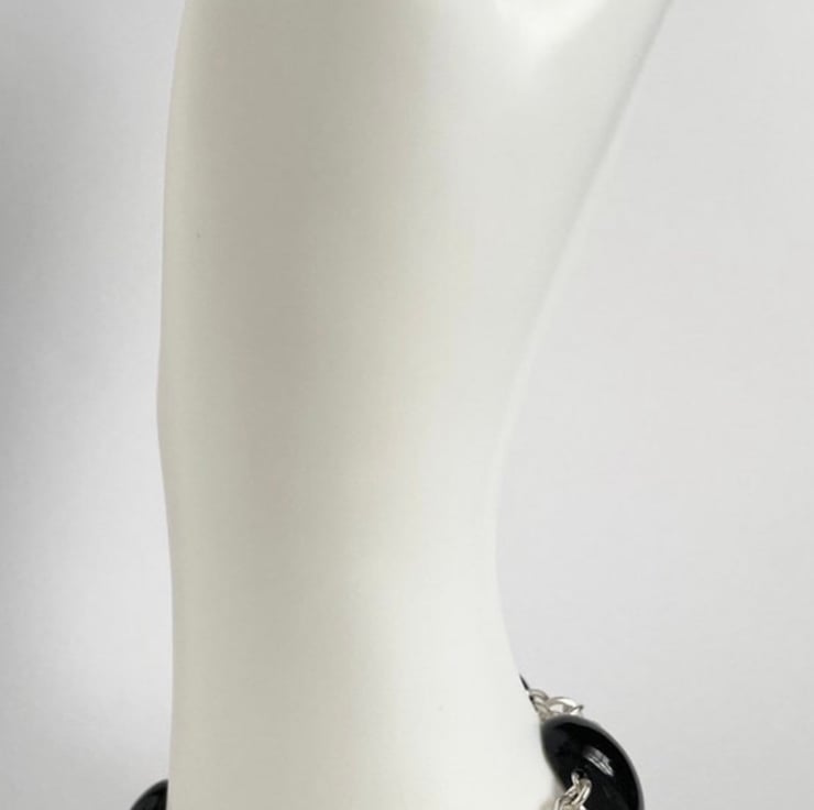 The bracelet has been fastened by a Sterling Silver sliding clasp.
