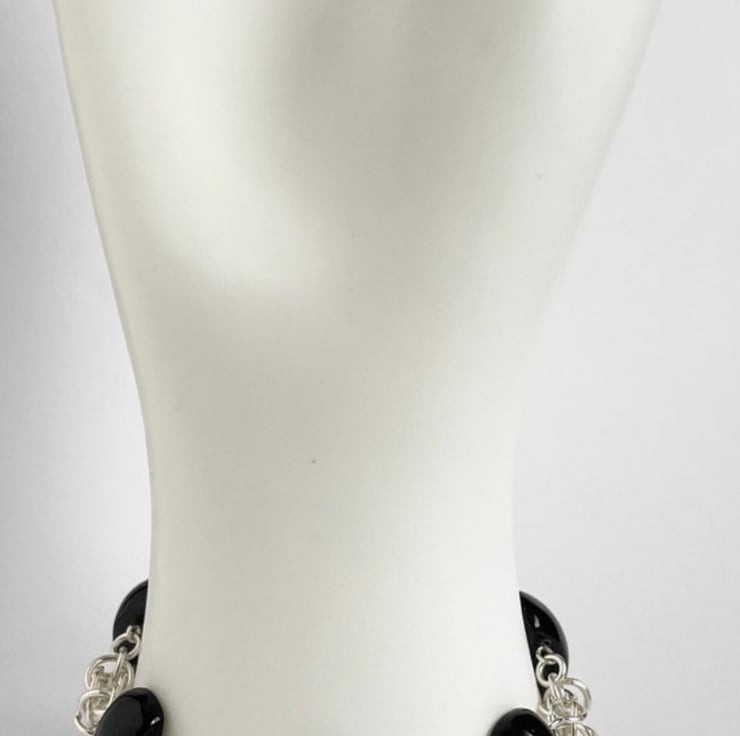 Each Chainmaille sections has been made by interlinking individual Sterling Silver rings that have been placed between the gemstones..