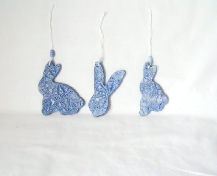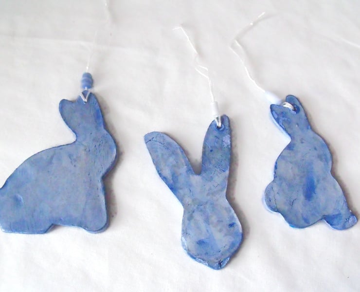 Here I've made a set of three decorative ceramic hanging rabbits.