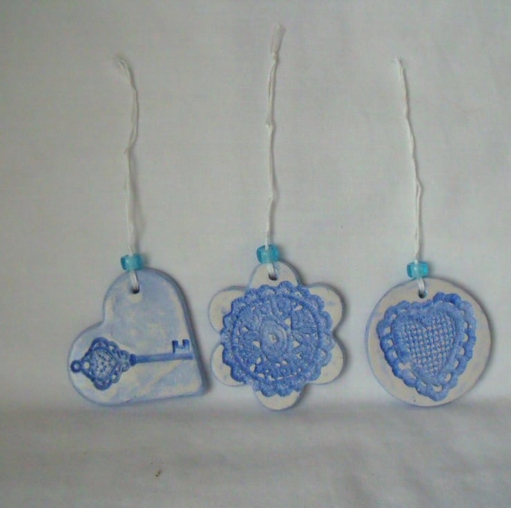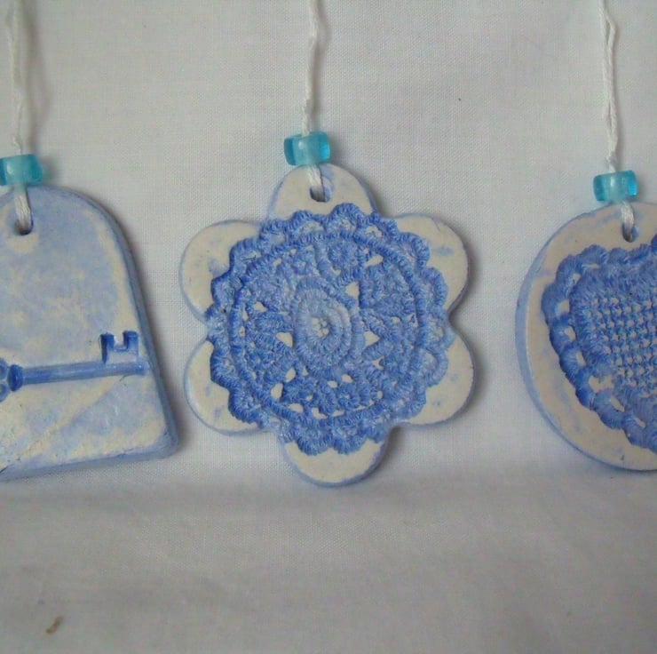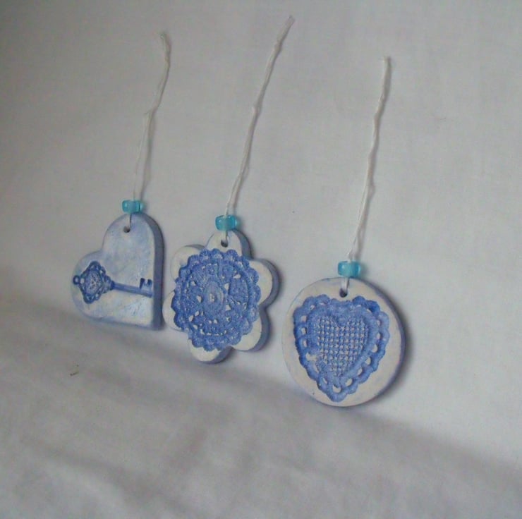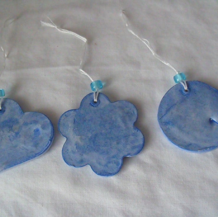 This is my new foray into working with clay, a cute set of three clay hanging decorations.
