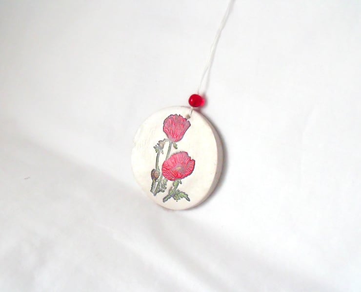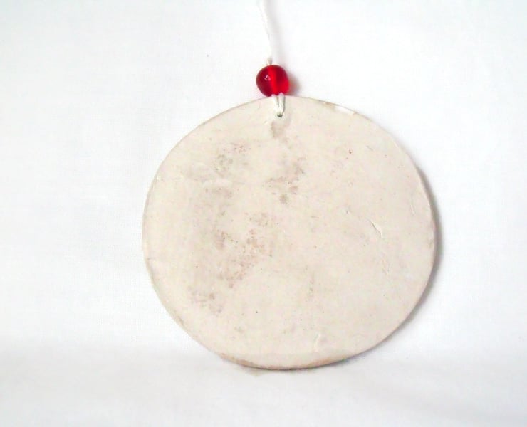Made using air dried clay which I impressed with a rubber stamp then painted it.