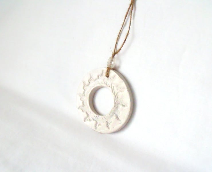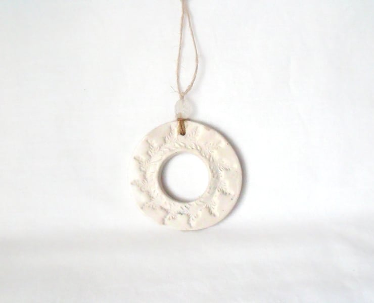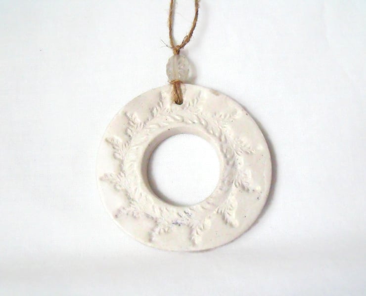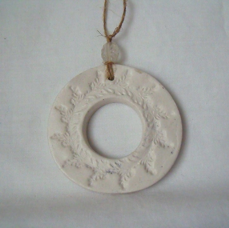 Here I've made a ceramic wreath hanging decoration.