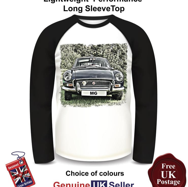 MGB, Mens Long Sleeve MGB T Shirt, Mens MG Top, Men's Baseball Top Long Sleeves Choose Your Colour & Size, This is a fan Inspired unofficial product the art work designed by us Aggies Bags the 160 gsm Featuring a lean design this 65% Polyester 35% Cotton lightweight performance T Shirt printed by us with a cotton-feel Polyester 180gsm (front and back) with 65% Polyester 35% cotton 160gsm (arms and neck) means it is a good quality garment for any occasion T Shirt ideal for the summer or holiday t shirt with an even and smooth surface Comfortable body length construction for a perfect look Side seams ensure the best fit For long-lasting comfort the neck seams are reinforced with soft binding Thin collar in self-fabric for modern up to date appearance Minimalist cut and detailing suitable for many uses and any end user requirements.