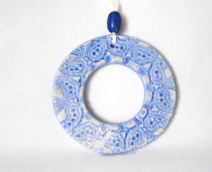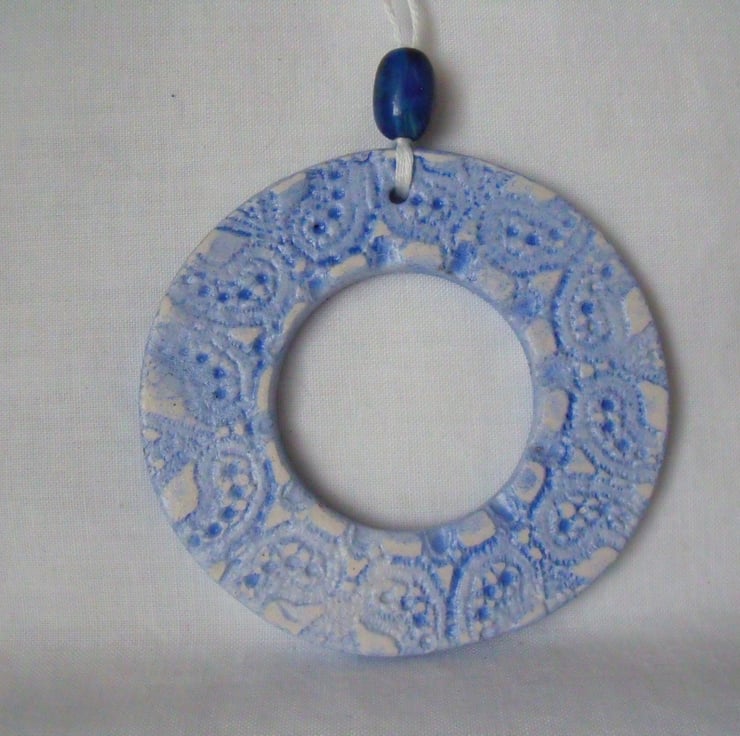 Made using air dried clay which I impressed with a vintage doily into the shape.