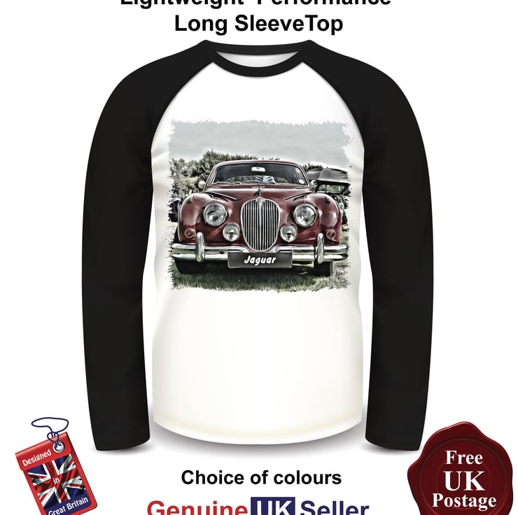 Jaguar MK2, Red Jag Mens Long Sleeve Top, Jag MK2 Mens T Shirt, Men's Baseball Top Long Sleeves Choose Your Colour & Size, This is a fan Inspired unofficial product the art work designed by us Aggies Bags the 160 gsm Featuring a lean design this 65% Polyester 35% Cotton lightweight performance T Shirt printed by us with a cotton-feel Polyester 180gsm (front and back) with 65% Polyester 35% cotton 160gsm (arms and neck) means it is a good quality garment for any occasion T Shirt ideal for the summer or holiday t shirt with an even and smooth surface Comfortable body length construction for a perfect look Side seams ensure the best fit For long-lasting comfort the neck seams are reinforced with soft binding Thin collar in self-fabric for modern up to date appearance Minimalist cut and detailing suitable for many uses and any end user requirements.