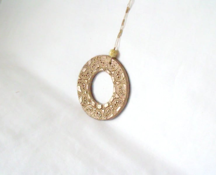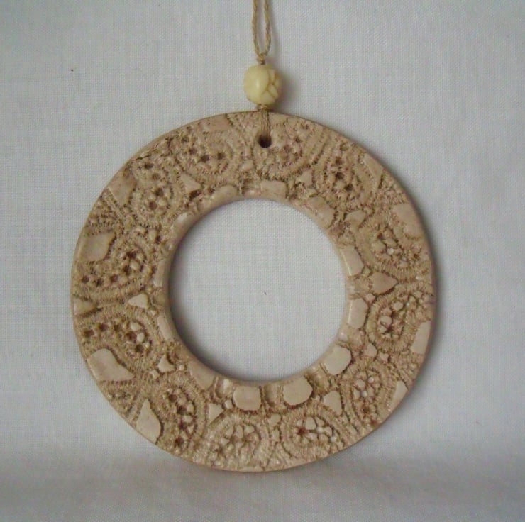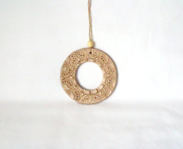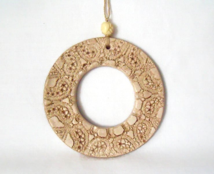 Made using air dried clay which I impressed with a vintage doily into the shape.