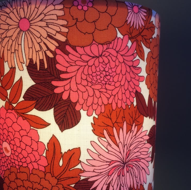 Funky Orange Pink Ashworth Floral 60s 70s Duro VIntage fabric Lampshade