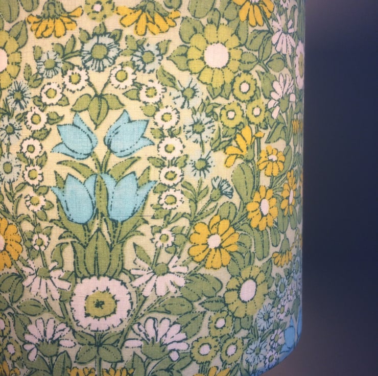 Zesty Lemon Lime Floral Daisy Chain Pat Albeck vintage fabric Lampshade option - this fabric was designed by Pat Albeck for Jonelle. A fresh and pretty focal point to any room, very limited amount of this colour.