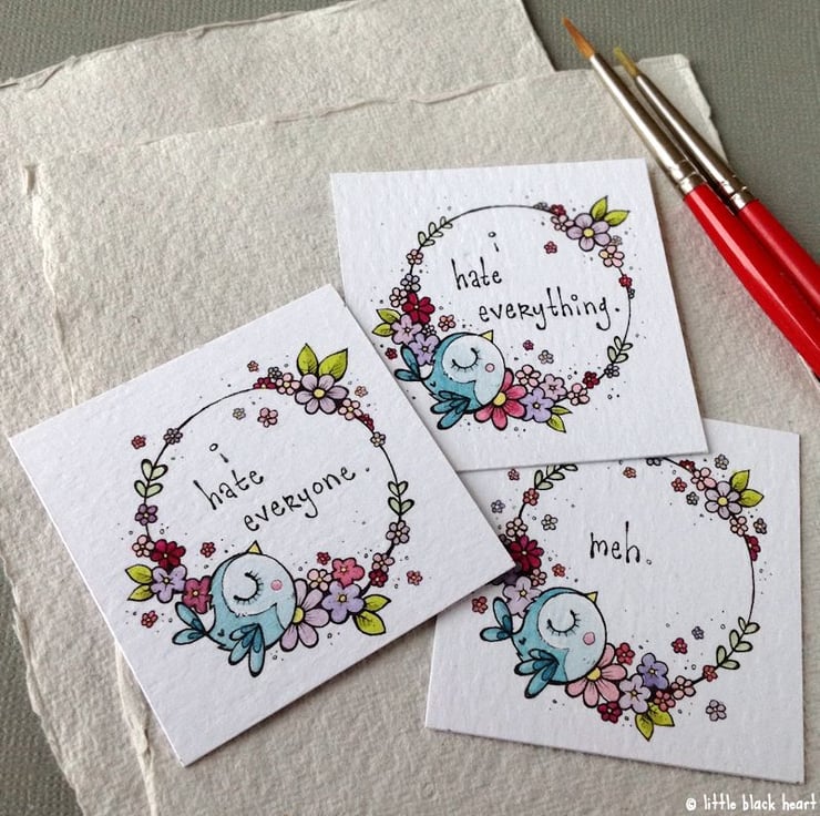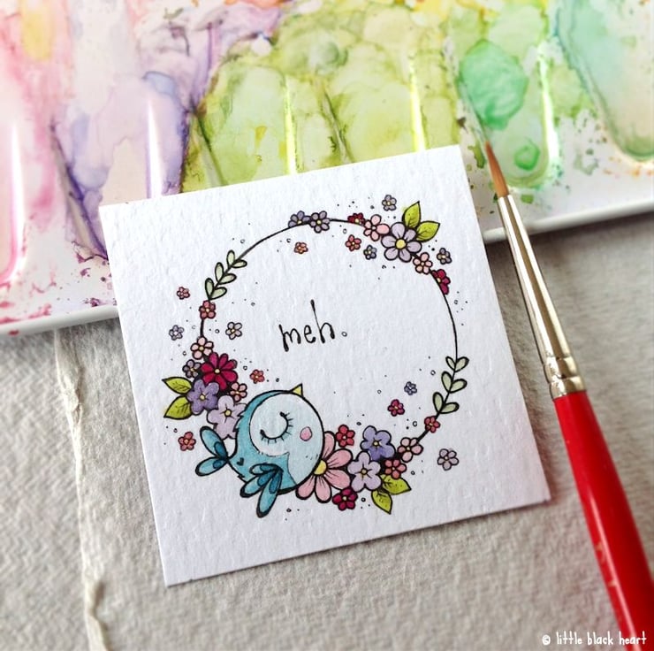 it is hand drawn in ink, and coloured with watercolour paint and art pens, on a lovely textured watercolour paper. (300gsm)