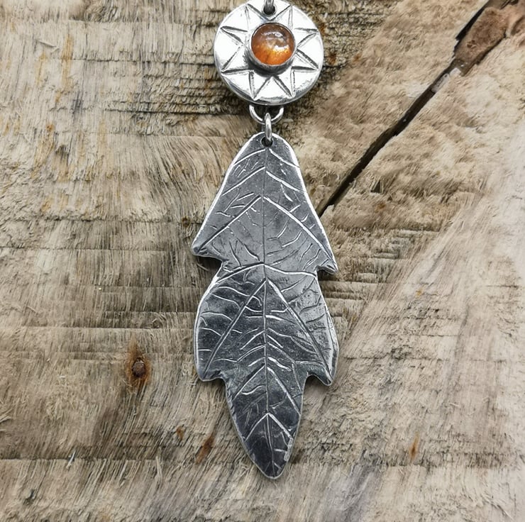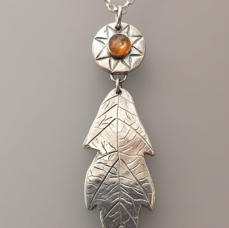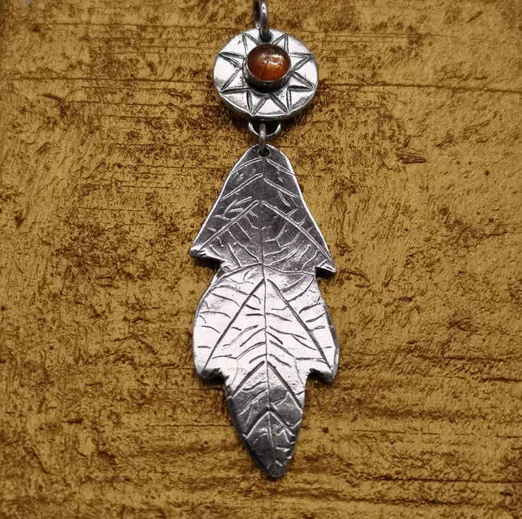 Made using traditional jewellery making techniques. I have pierced out the shapes with my jewellers saw, carefully soldering the components into place. I have used a combination of hammer texture and hand engraving on this pendant which also has an oxidised finish. Set with a beautiful sunstone cabochon.