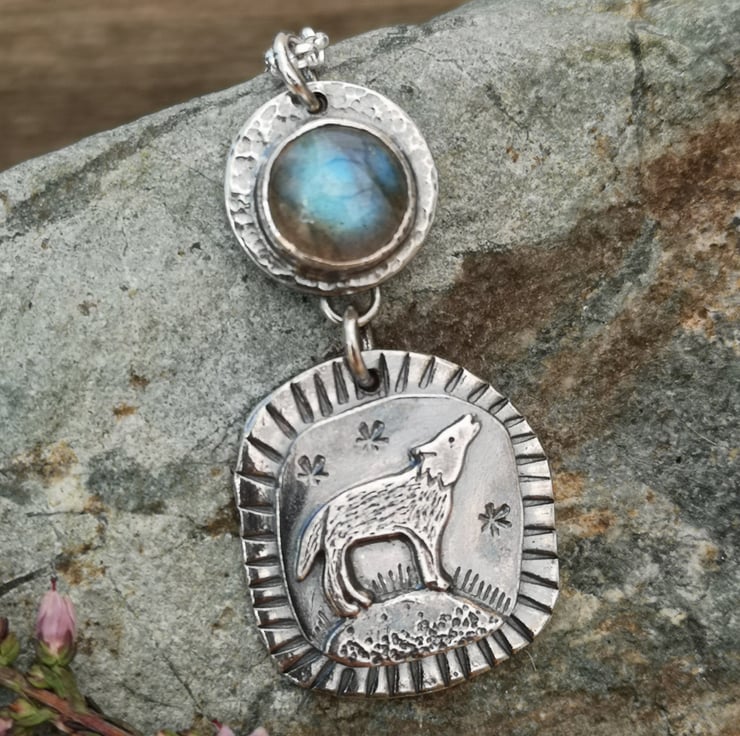 Made using traditional jewellery making techniques. I have pierced out the shapes with my jewellers saw, carefully soldering the components into place. I have used a combination of hammer texture and hand engraving on this pendant which also has an oxidised finish. Set with a beautiful labradorite stone.