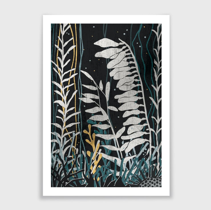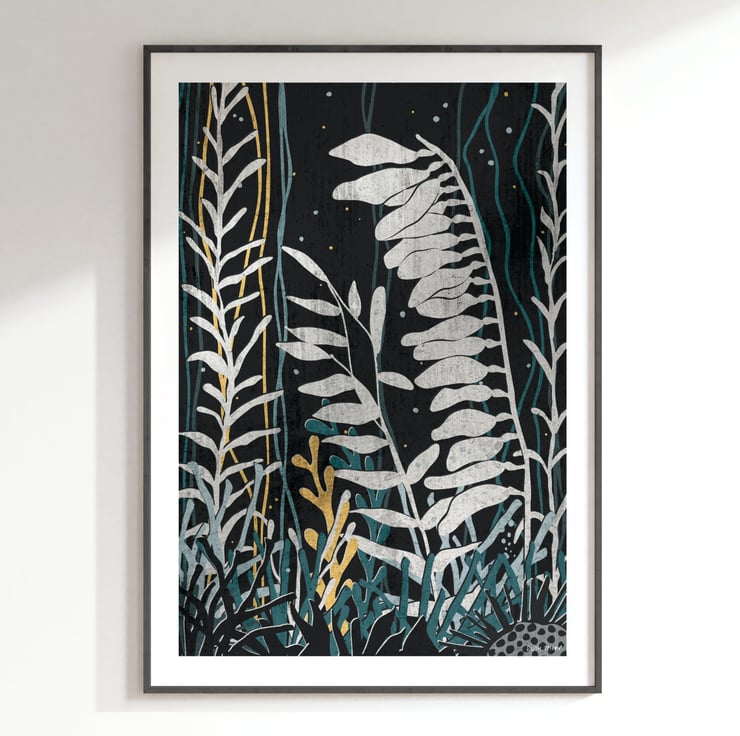 Swim into an underwater paradise with this ocean flora inspired art print.