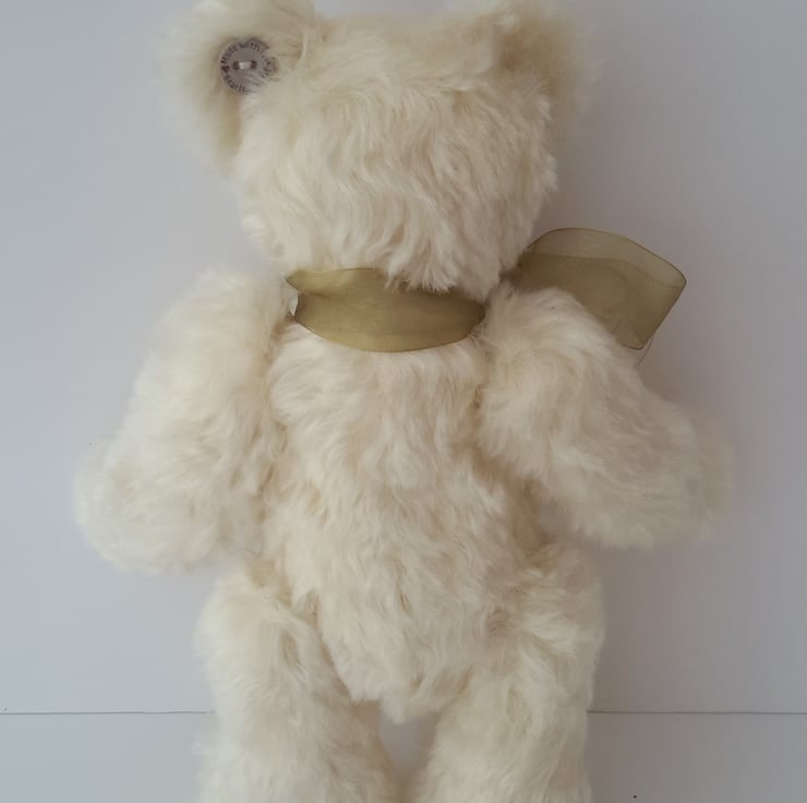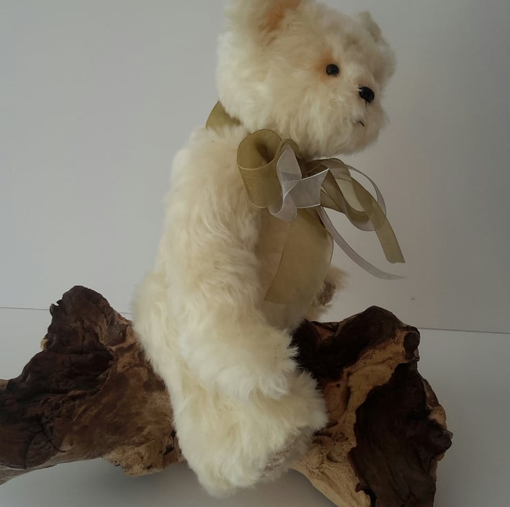 Snowdrop stands at 11.5" tall and has been handmade to one of my own designs in a luxurious dense mohair. A premium whirl mohair at £160 per metre, in a natural ivory colour.