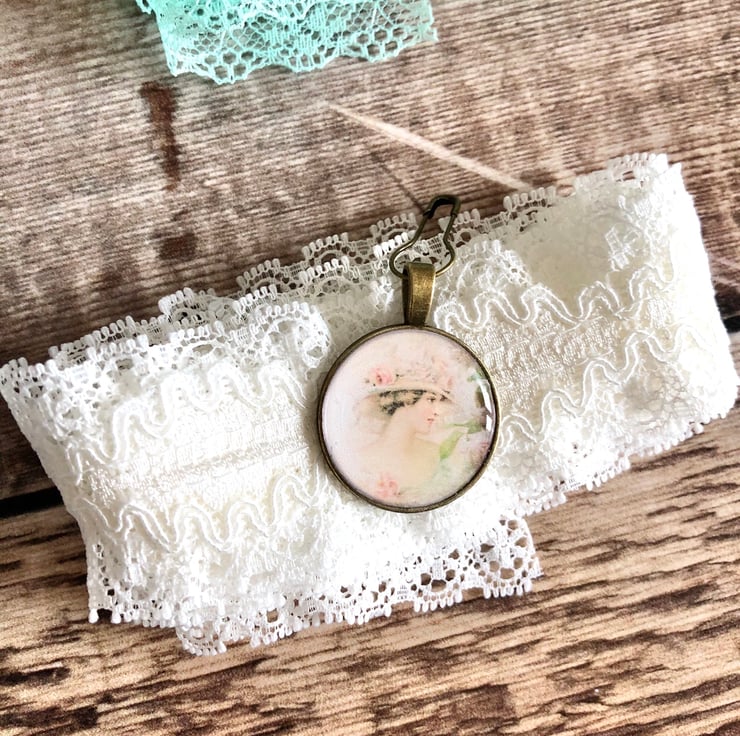 1 x little cabachon tray dangle I made with Vintage lady image to match the kit