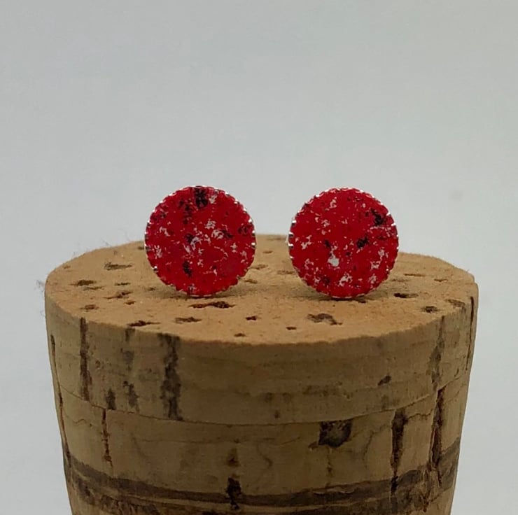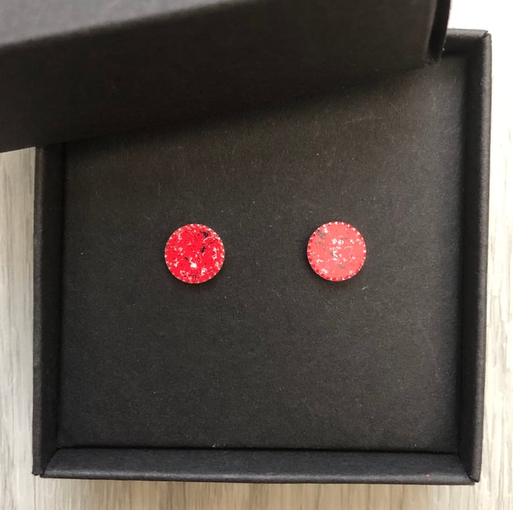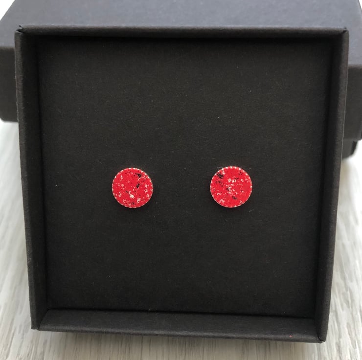 Red, Black& White Sterling Silver Hand Enamelled Stud Earrings.