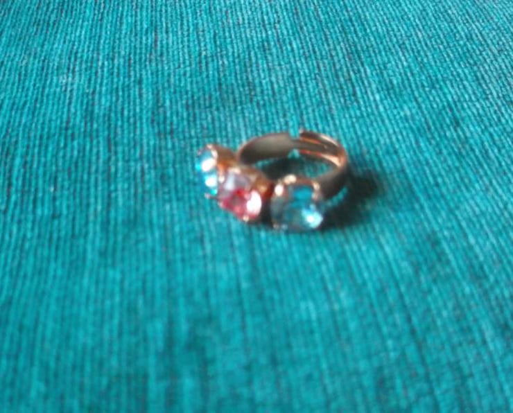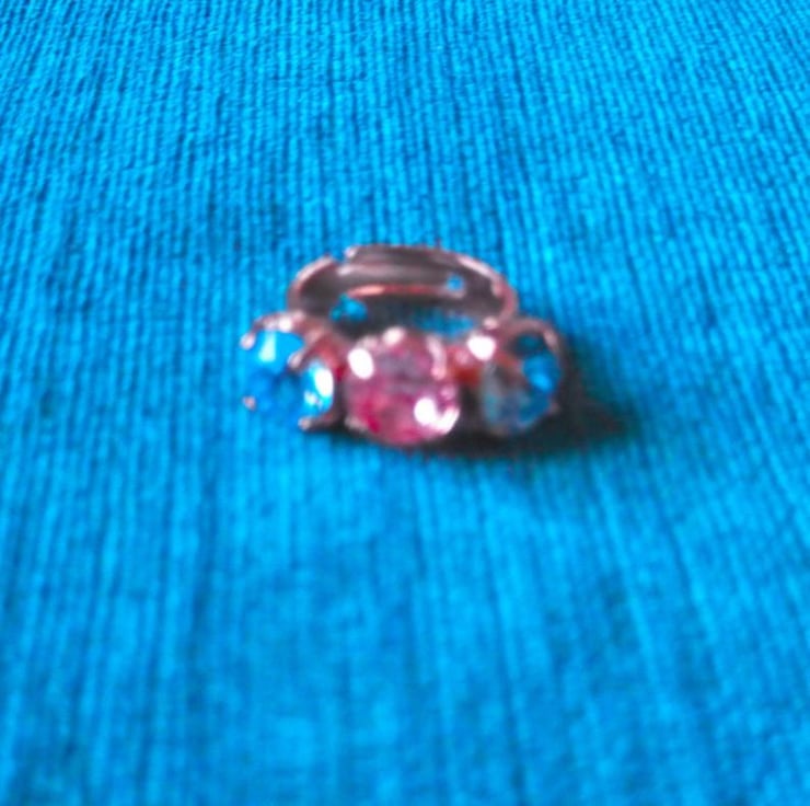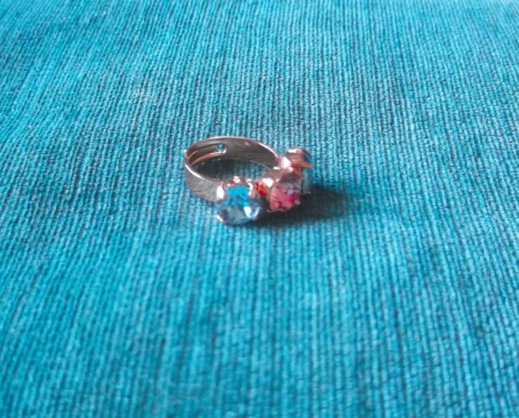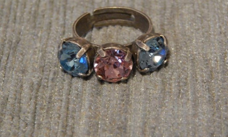 Made with aquamarine and light rose Swarovski chatons in a rose-gold ring base.