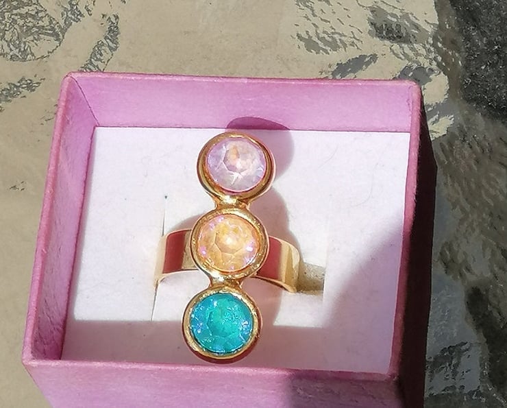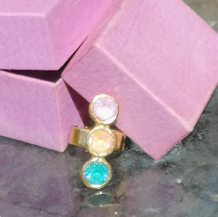 Made with ss39 Lavender Delite, Peach Delite and Laguna Delite Swarovski chatons. Ring colours may vary.