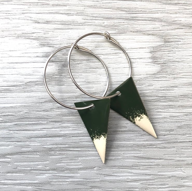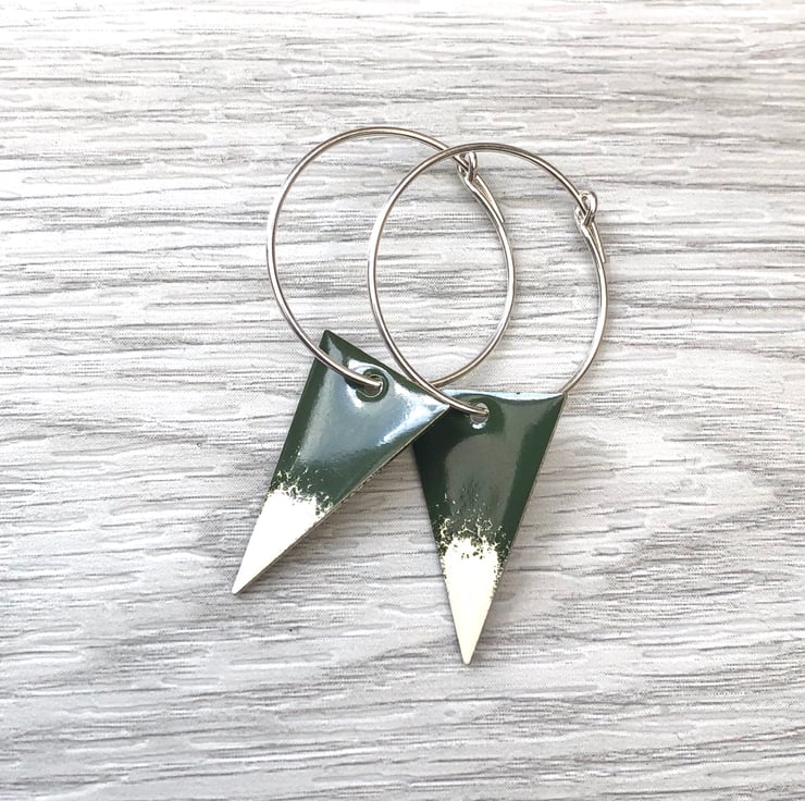 Hand enamelled unique hoop earrings. Due to the technique used to make these enamel charms, no two are every the same making each pair individual and unique to you. Each pair made are photographed separately, you will receive the pair in the photo.