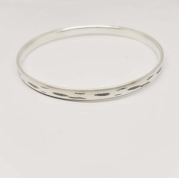 Its been given a texture to resemble the bark on a silver birch tree. A patina to darken and highlight the design.