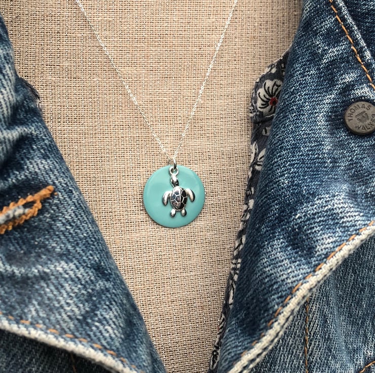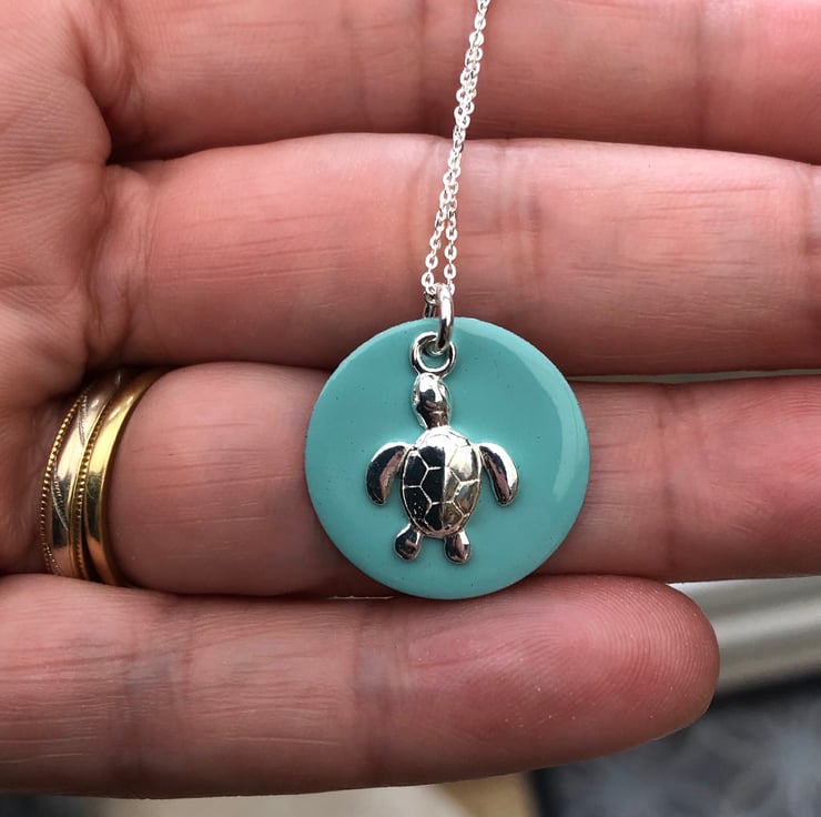 13mm sterling silver cute sea turtle charm has been attached using a sterling silver jump ring.