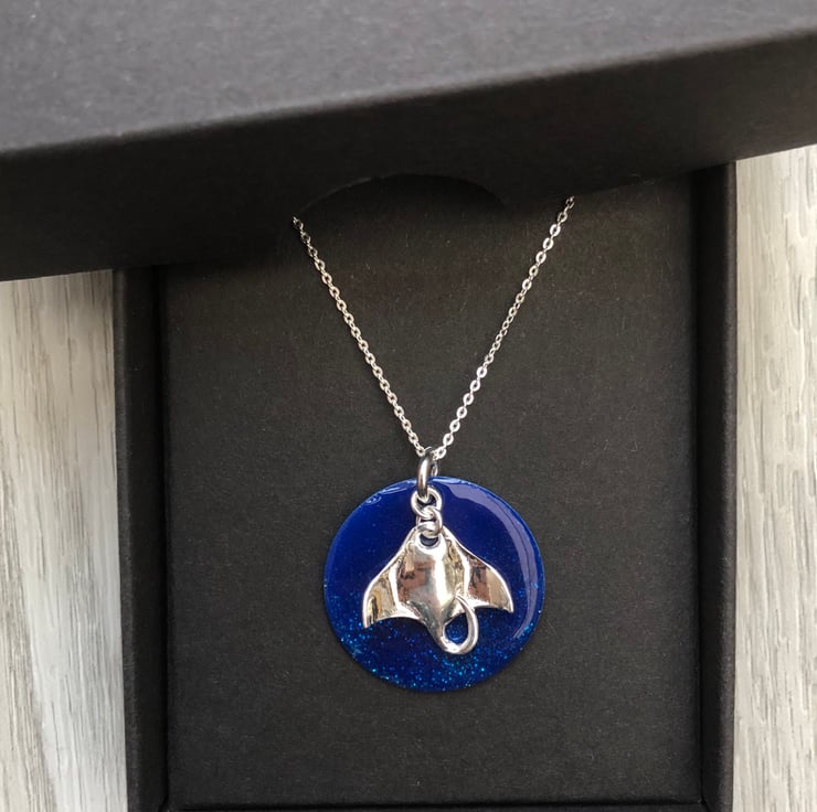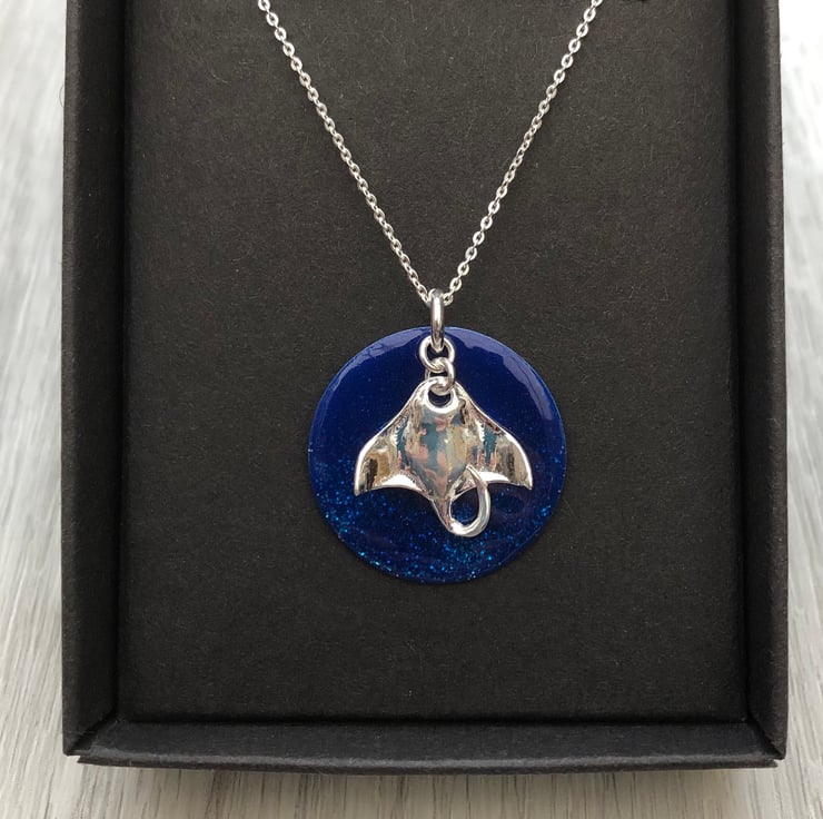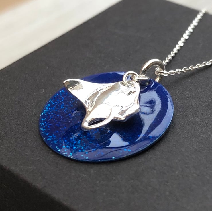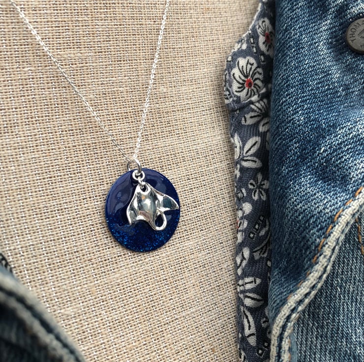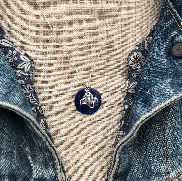 13mm Sterling silver manta ray charm has been attached using a sterling silver jump ring.