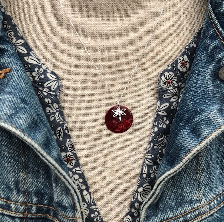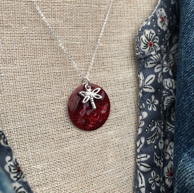 Enamel is powdered glass, which is layered and heated several times until you reach the desired look. The back of the charm is left blank to compliment the sterling silver necklace. Due the the technique used, small traces of enamel may he found on the reverse, but every effort is made to keep them clean.