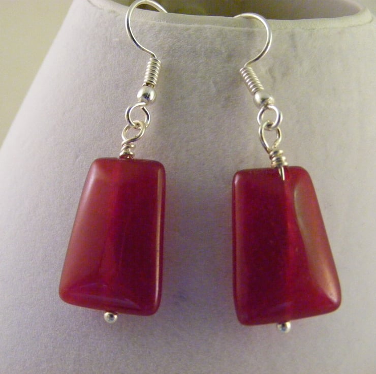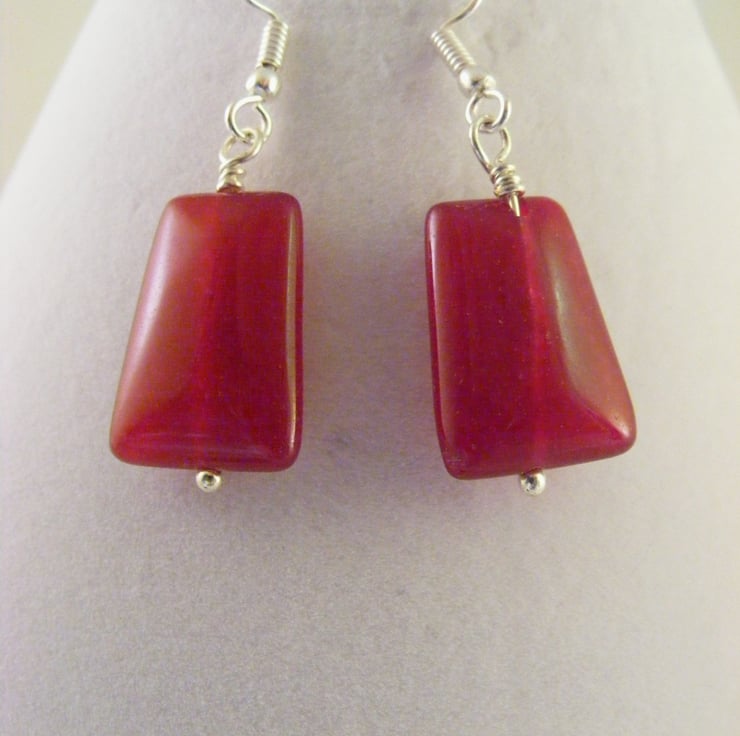 Handmade gemstone earrings made with, 20 x 14 mm red agate trapezoids, silver plated headpins and ear wires. Ear wires can be exchanged for studs at no extra cost. If you would like a precious metal please contact me with your preference.
