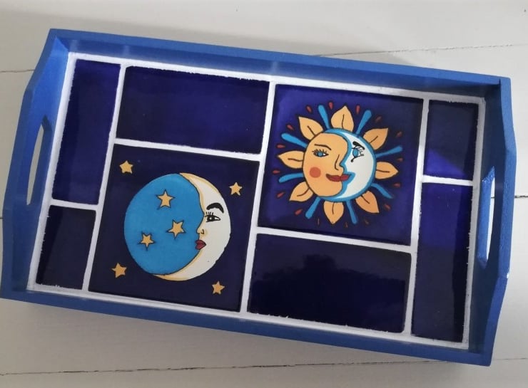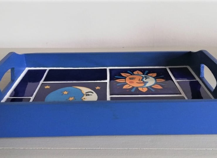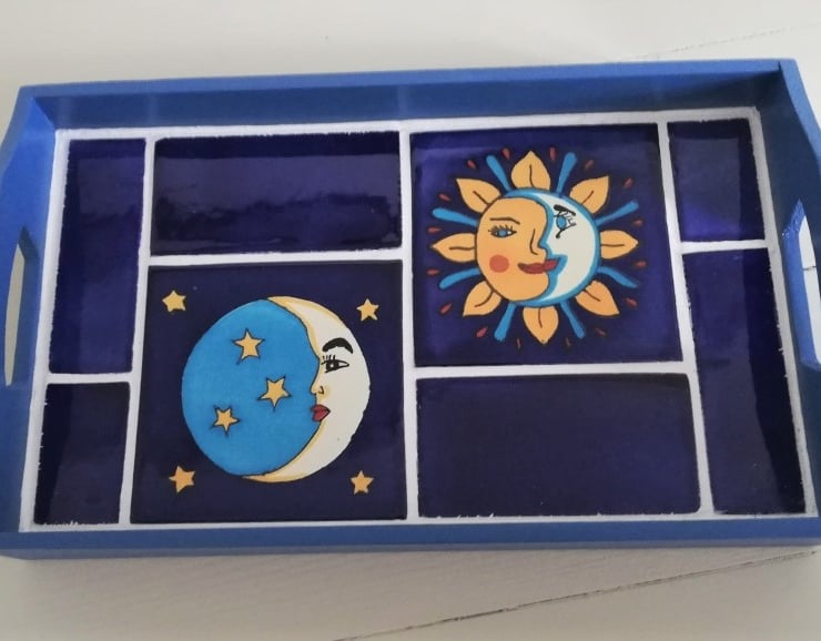 The mexican tiles in this tray are individually handmade in Mexico. Their handmade nature ensures a unique look and the tile designs are both of traditional and contemporary styling.