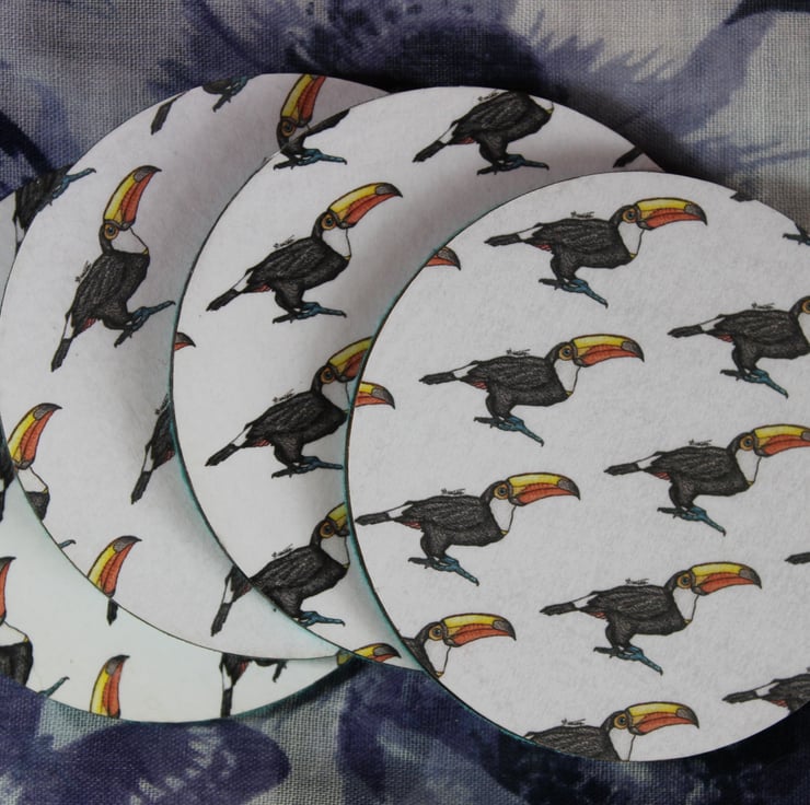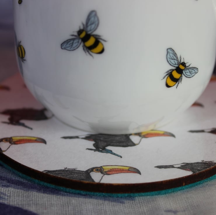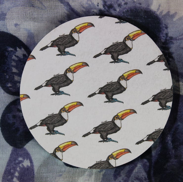 Featuring my very own Toco Toucan drawing, this one patterned wood coaster measures 10cm and is lined with a teal felt bottom. Item may vary slightly from photos as they are each handmade.