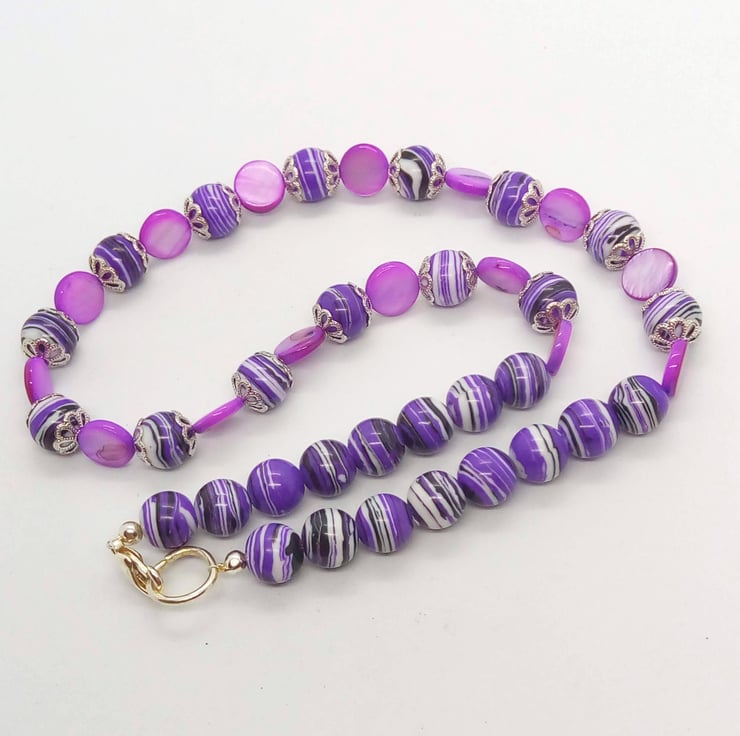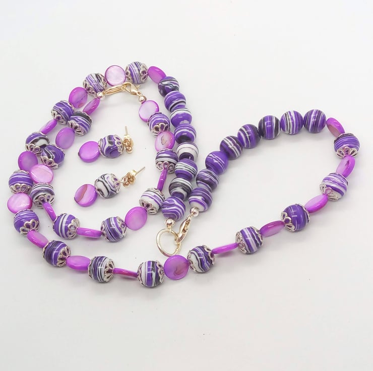 Purple Mother of Pearl & Purple Agate Beaded Jewellery Set, Necklace, Bracelet, Earrings, Ladies Accessories, Birthday Gift, Anniversary Gift, Jewellery