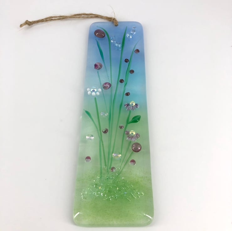 This gorgeous light catcher with a mix of pretty pink flowers is from my 'meadow range' Hung on a piece of jute it allows the light to travel through - this gives the piece depth and shows off the full beauty of the glass.