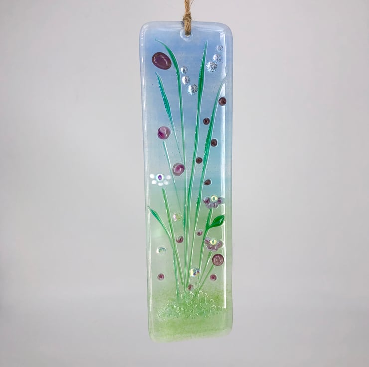 I've always been a stickler for detail which isn't always easy to achieve with fused glass. After many hours of experimenting I created my meadows which are made up of tiny lamp worked flowers and foliage with gorgeous accents of sparkle from dichroic glass. The result is ethereal - delicate, feminine and dreamy.