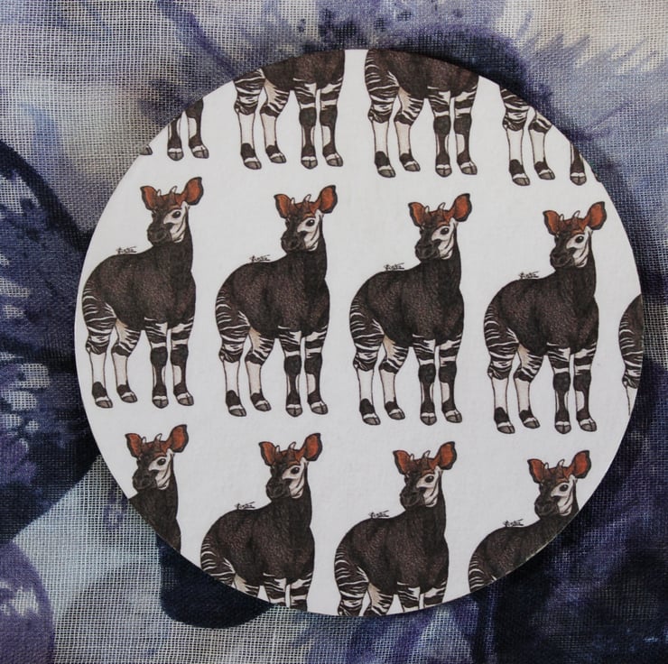 Featuring my very own Okapi drawing, this one patterned wood coaster measures 10cm and is lined with a dark green felt bottom. Item may vary slightly from photos as they are each handmade.