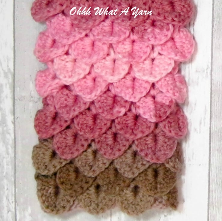 I adore all the gorgeous colour changing yarns and they are shown off perfectly with the crochet crocodile stitch.