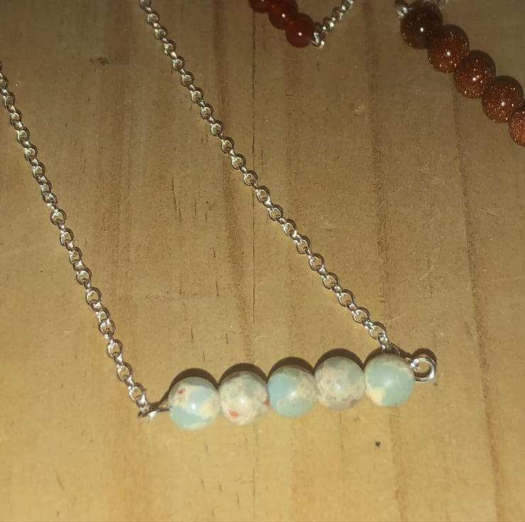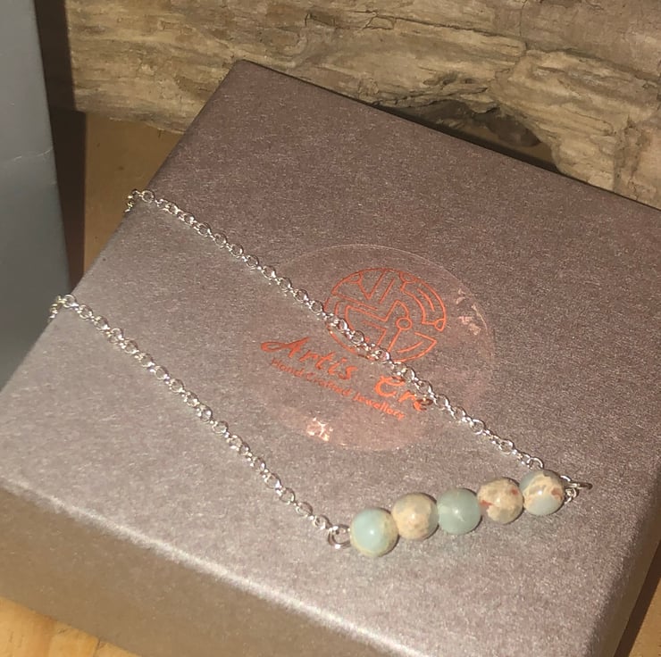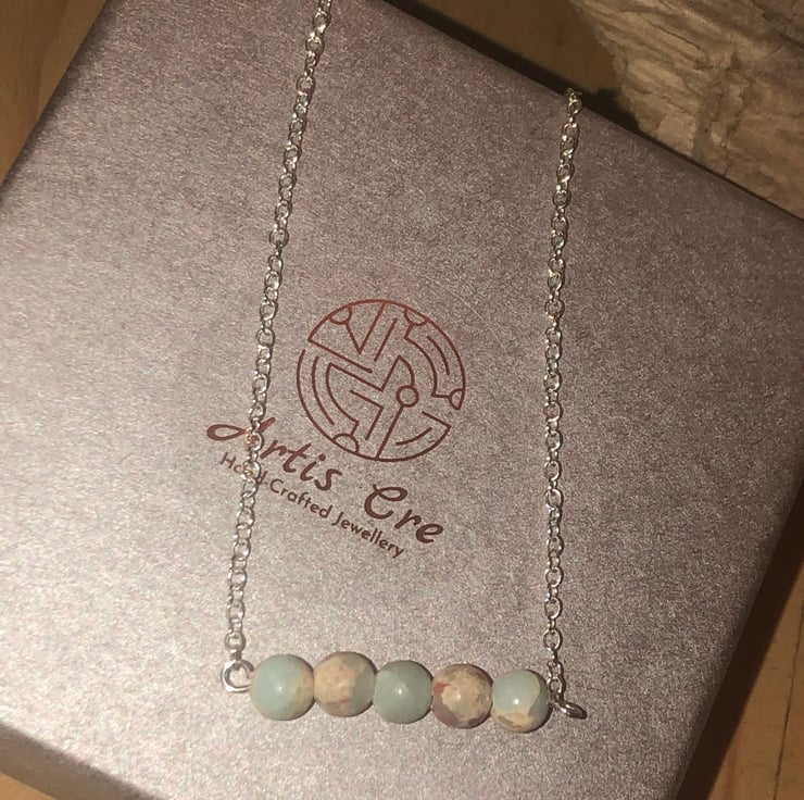 These gemstones each have their own individual pattern with mainly light pastel blue and a cream colour pattern a with hint of red veining.