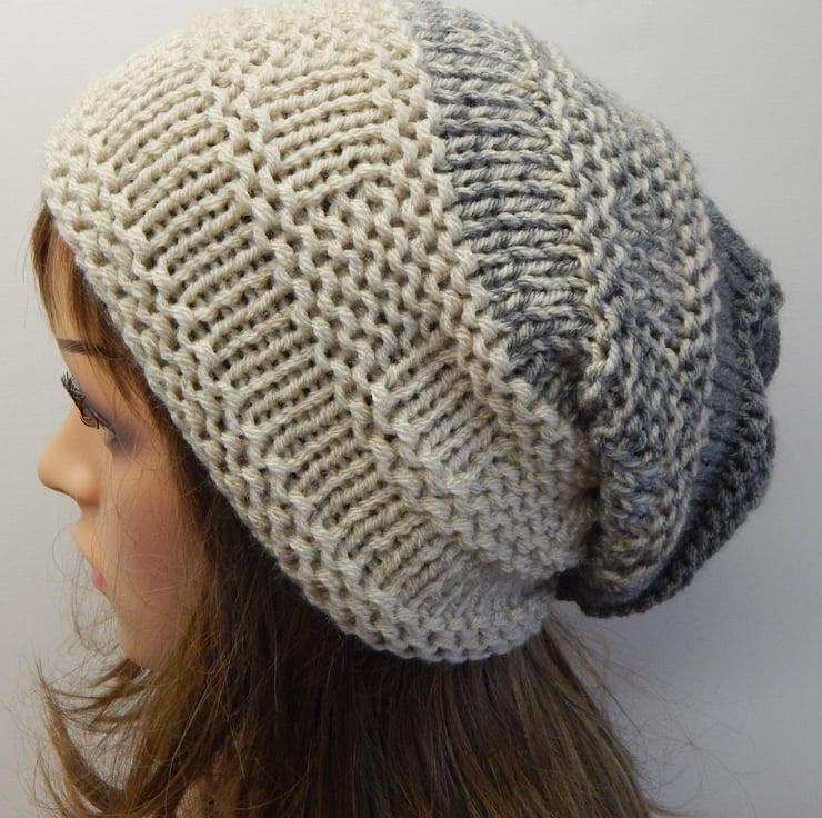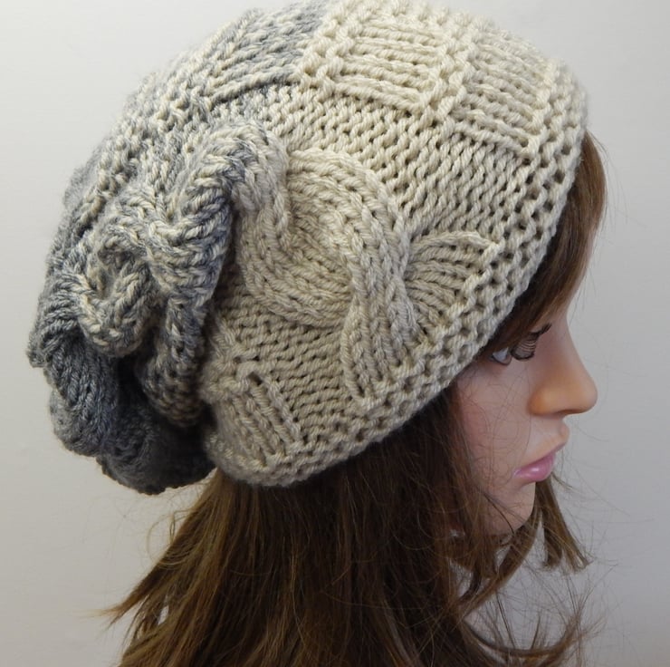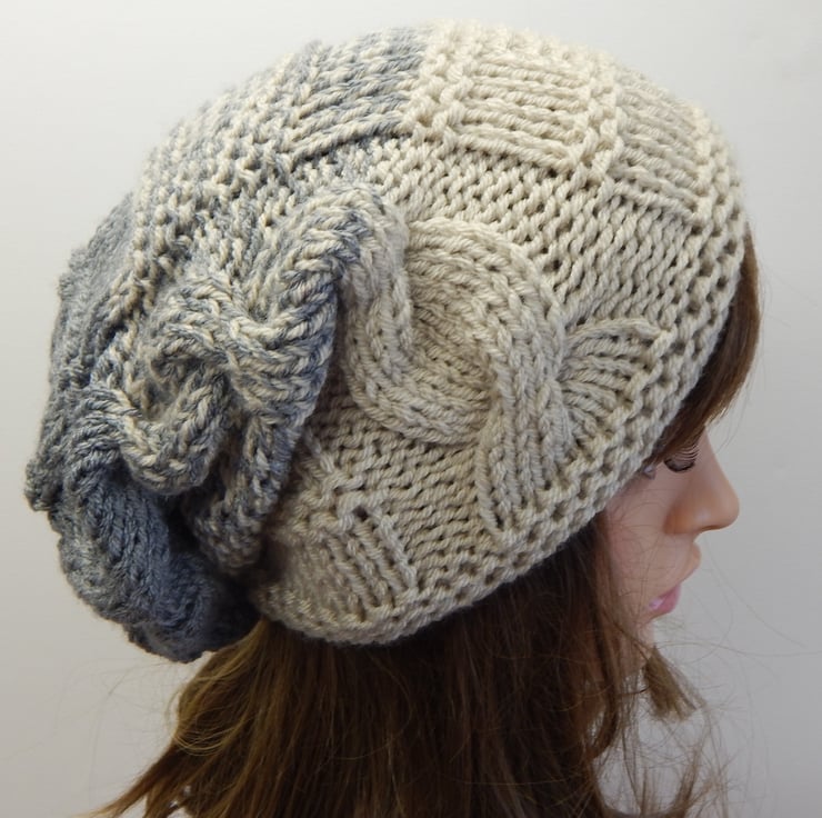 Hand knitted women slouchy beanie hat.