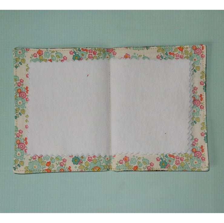 This fabric just had to be made into a needle case, as it features a selection of cotton reels. It measures approx 4.5 x 3 inches , and it is lined in toning Tilda cotton fabric and has four flannel leaves for your pins and needles.