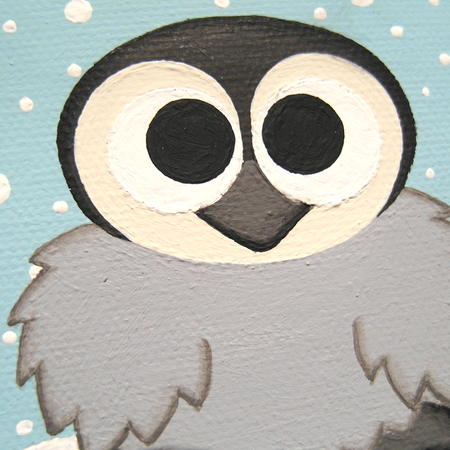 This original cartoon penguin art is painted in acrylics on a 7.5cm (3") square canvas and is signed and dated on the back.