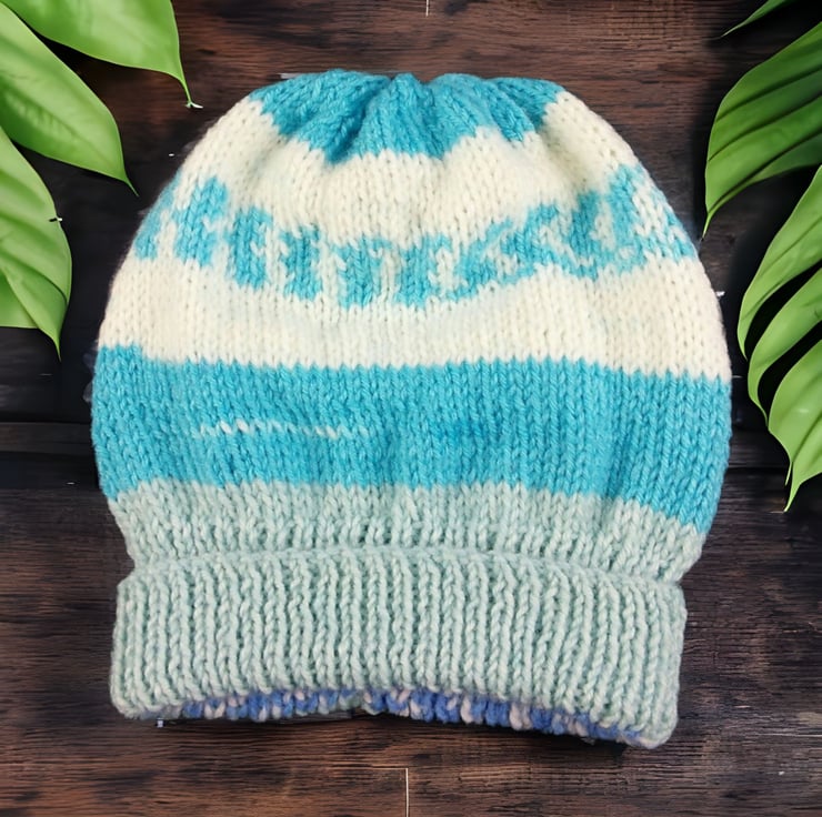 Charming Blue and Cream Hand-Knitted Baby Aran Hat, a delightful accessory designed to keep your little one cosy and stylish. This beanie hat is meticulously crafted using Aran weight yarn, ensuring that your baby stays snug and warm even during those chilly days. The yarn boasts a beautiful blend of blue and cream, creating a charming and versatile look.