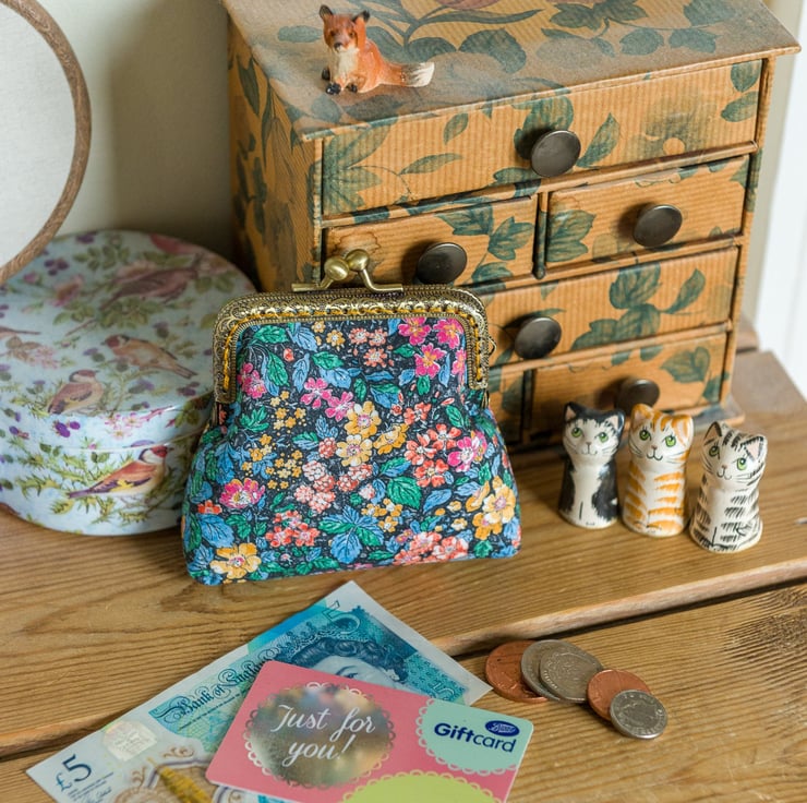 This coin purse is the perfect size to pop into your pocket with a little cash, a key and maybe a lip balm, when you want to travel light - you could also just squeeze a credit card in there. It's also a great way to wrap up a money gift for a birthday or holiday gift, or to give as a bridesmaid gift.