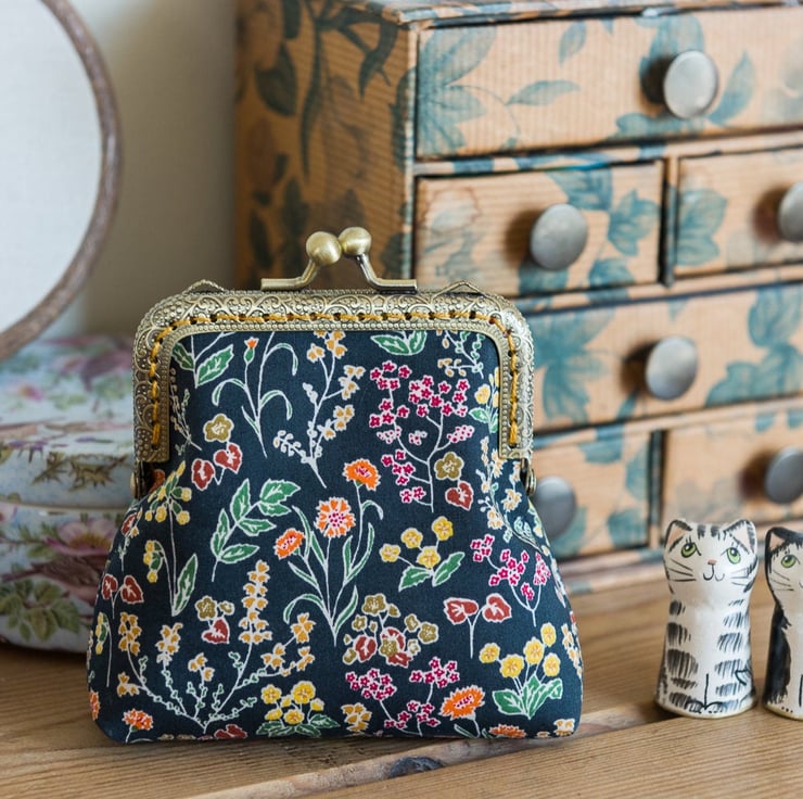 I've made the purse with a beautiful and delicate Liberty Tana Lawn print called 'Tess and Rosa' inspired by tapestries seen at Mount Stewart and The Burrell Collection. Traditionally, primrose symbolises spring, first love, romance intoxication and attraction, while heather represents passion. Cornflower symbolises virtue, with cowslip representing pensiveness.