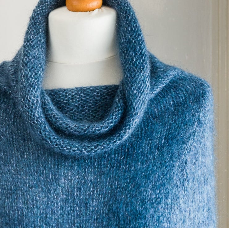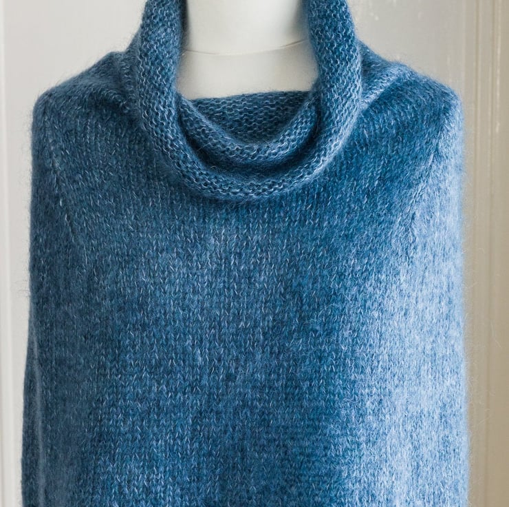 When you need a big warm hug, this caplet or poncho will give you one! Looks great worn over crew or polo neck top or jumper, or maybe a nice white shirt. The piece is a supersized longer version of my own original design for a short shoulder cosy, which you can also find in my shop.