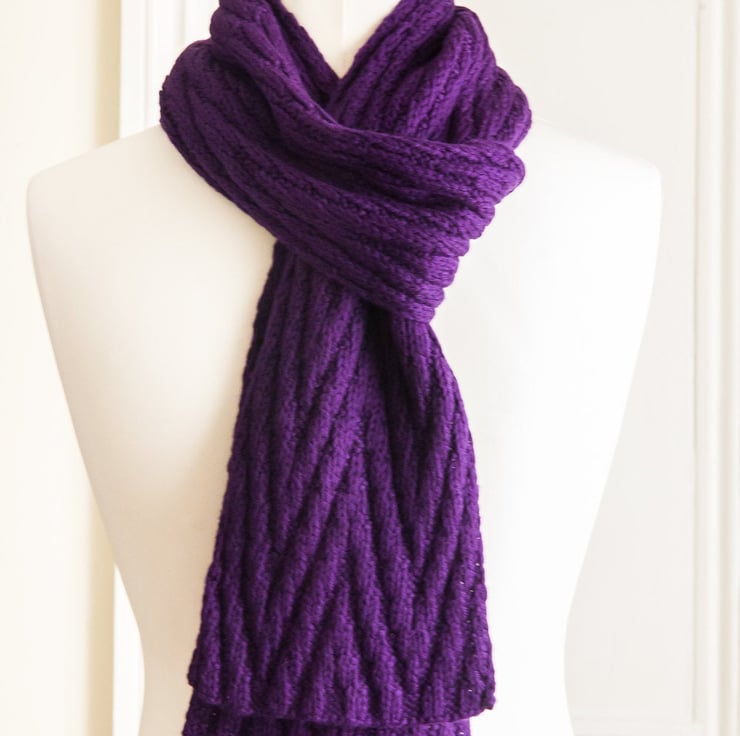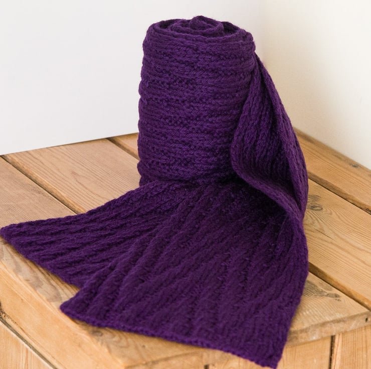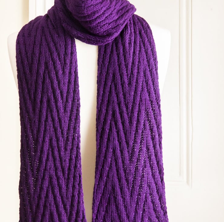 This scarf has a deep chevron pattern on both sides of the scarf and it is knit in a pure Peruvian Highland Wool yarn. It is soft against the skin but roughty toughty enough to keep out the cold. The scarf is 198cm (78 inches) long and 15cm (6 inches) wide.