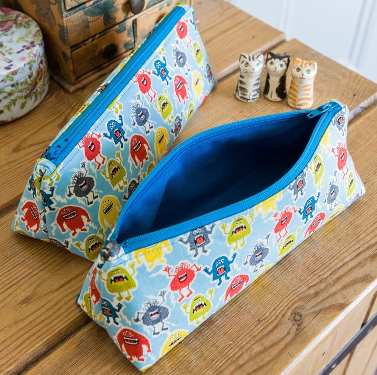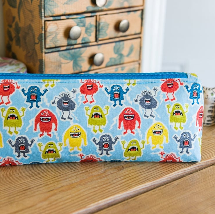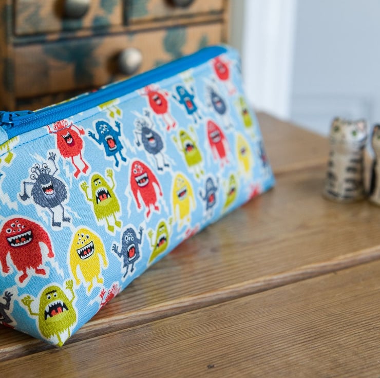 This flat bottomed and straight sided zippered pouch can be used for all kinds of things, although it'd make a perfect pencil case - especially for a wild child with the fun and brightly coloured monsters print.