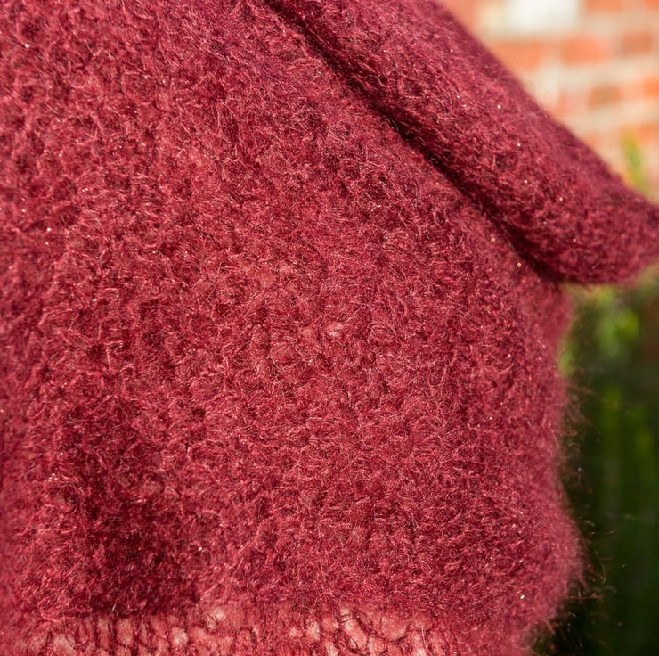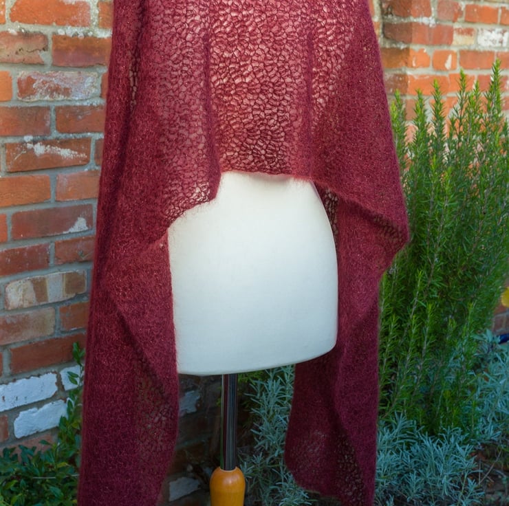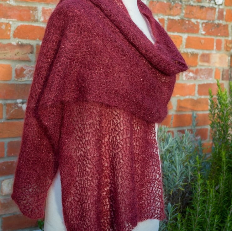 The effect of the metallic sparkle against the orange red coloured mohair amd silk is quite subtle - it looks like you've been sprinkled with fairy dust! I've included a close up picture of the wrap so you can see the shimmer.
